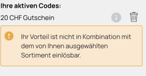 Leider nicht kombinierbar mit den gegebenen Gutscheinen: