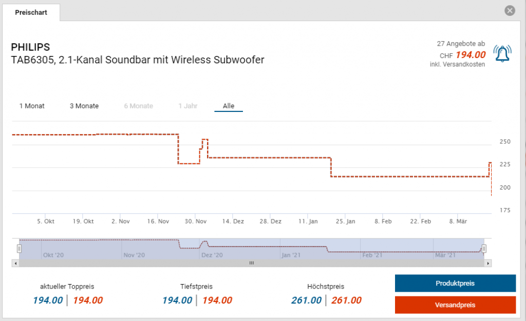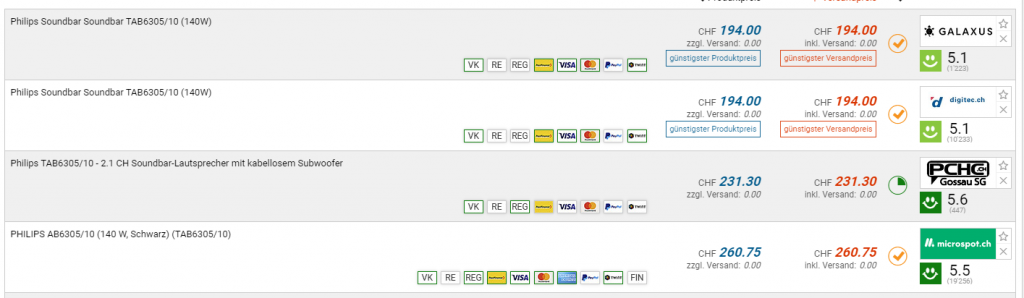 Bei Galaxus gibt es die Philips Soundbar TAB6305/10 für den neuen Bestpreis von CHF 194.-. Der vorherige Bestpreis CHF 215.-. Der zweitbeste Preis beträgt CHF 231.30.