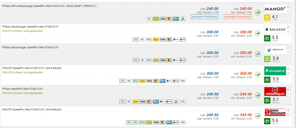 Bei Manor gibt es momentan den PHILIPS SpeedPro Max für den neuen Bestpreis von CHF 240.-. Der vorherige Bestpreis lag bei CHF 264.-. Der zweitbeste Preis ist CHF 300.- bei galaxus.