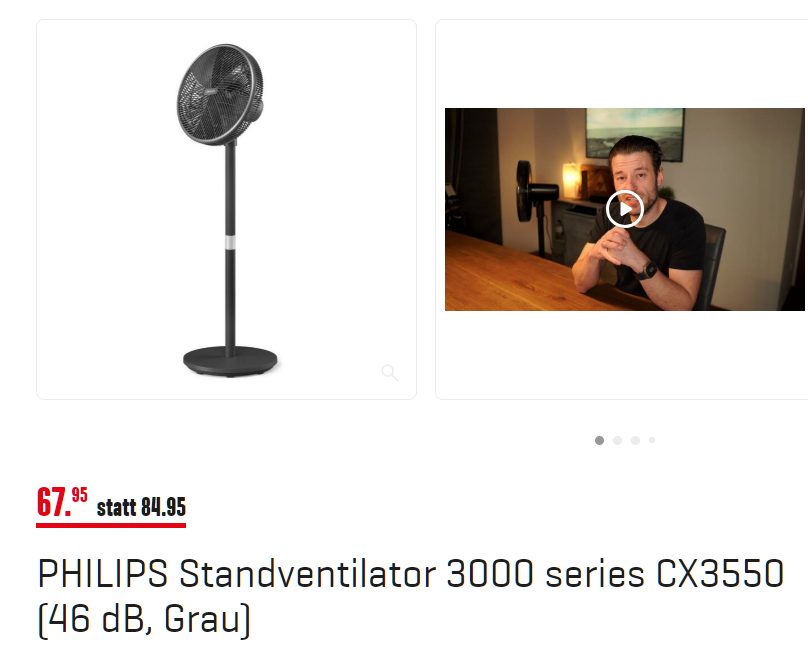 Bis am 6.7. gibt es den Philips Standventilator 3000 Series CX3550/01 bei Interdiscount zum Aktionspreis von 70.50 Franken. Wer vor Kurzem nicht zuschlagen konnte bei Amazon, kann es jetzt hier – dort lag der Preis bei ca. 69.– Franken. Andere Anbieter verlangen aktuell einen Preis von 88.90 Franken.
