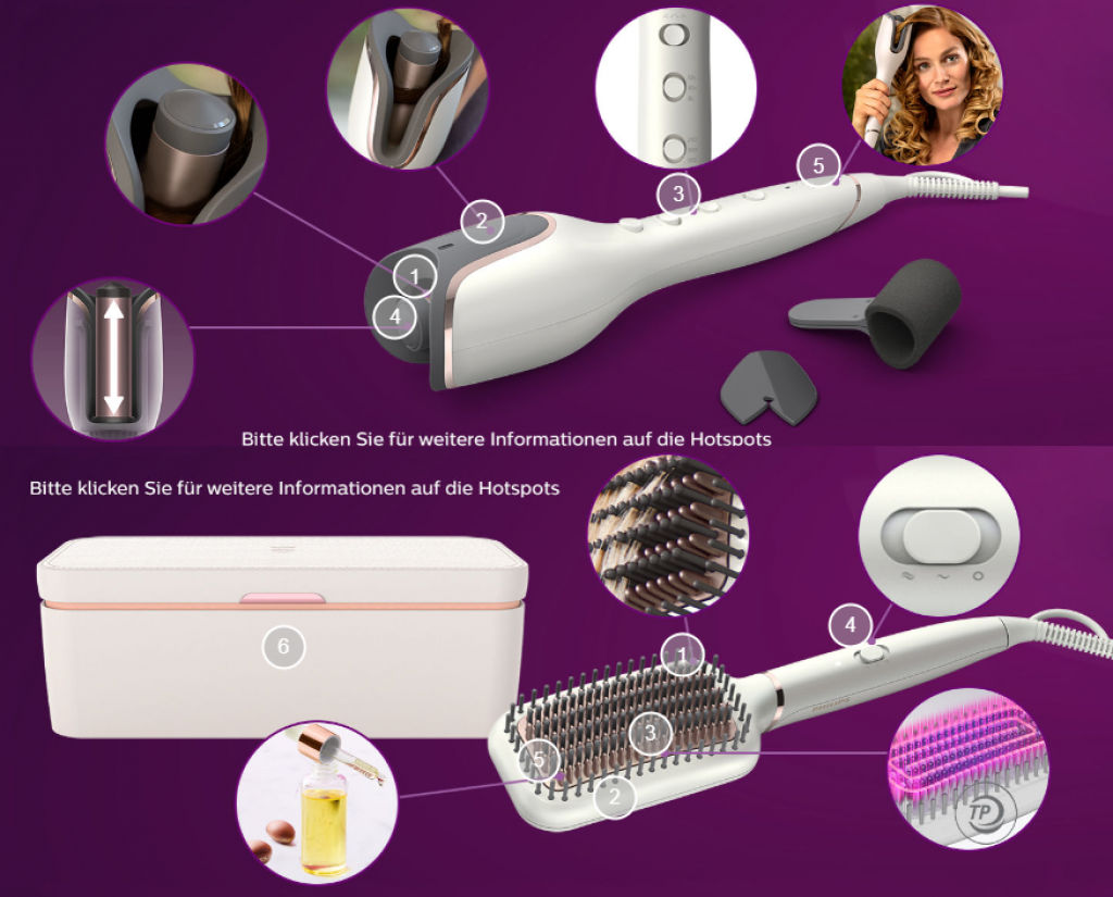 Das Philips Prestige Styleset mit automatischem Lockenstab und Glättbürste sorgt für langanhaltende, perfekte Looks. Im Lieferumfang ist eine luxuriöse Aufbewahrungsbox enthalten. Kreieren Sie Ihren eigenen Style schnell und einfach: Glamouröse Locken oder natürlich glattes Haar.