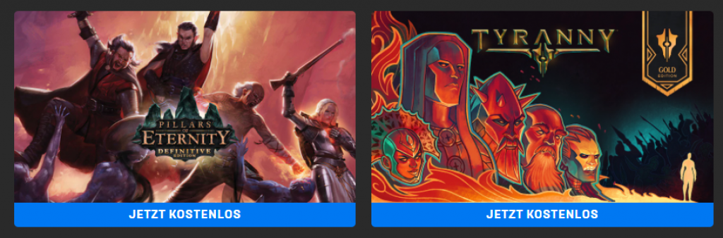 Im Epic Games Store gibts bis nächste Woche am 17.12. die beiden Games Pillars of Eternity in der Definitive Edition sowie Tyranny in der Gold Edition mit allen DLCs gratis zum Runterladen.