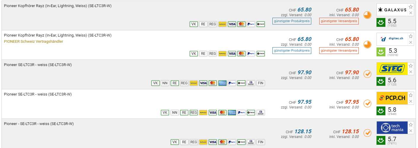 Bei galaxus und digitec gibt es die Pioneer Rayz für den neuen Bestpreis von CHF 65.80. Der vorherige Bestpreis und auch zweitbeste Preis beträgt CHF 97.90.