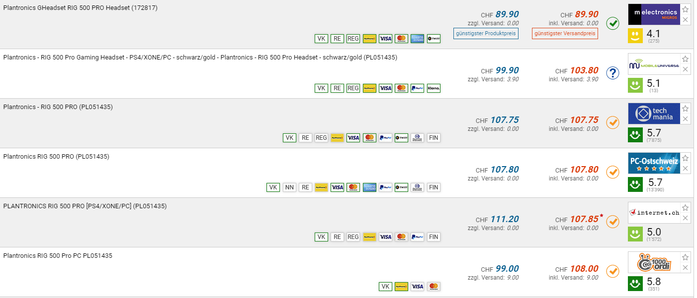 Bei melectronics gibt es das Plantronics GHeadset RIG 500 PRO für den Bestpreis von CHF 89.90. Zuletzt war der Preis im April 2019 so tief. . Der zweitbeste Preis beträgt CHF 103.80.