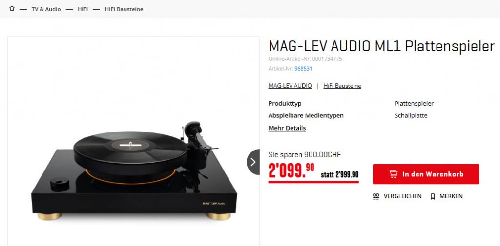 2099.90 zweitbester Preis 2999.90: https://www.interdiscount.ch/de/tv-audio/hifi/hifi-bausteine-c152000/mag-lev-audio-ml1-plattenspieler-p0001734774