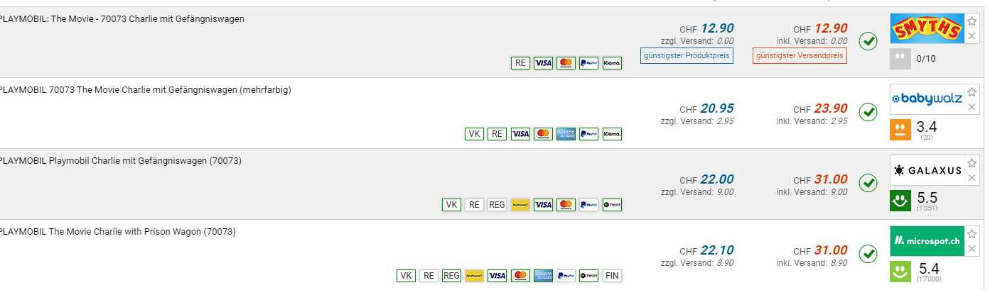 Bei SmythysToys gibt es den PLAYMOBIL: The Movie - 70073 Charlie mit Gefängniswagen für den neuen Bestpreis von CHF 12.90. Der vorherige Bestpreis war CHF 19.90. Der zweitbeste Preis beträgt CHF 23.90.