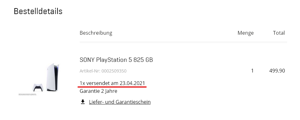 Ich hatte die Ps5 auch am 17.03. Bei Interdiscount bestellt und habe gestern endlich eine Versandbestärigung erhalten, dass die Konsole am Montag eintreffen soll. Kann es kaum erwarten.