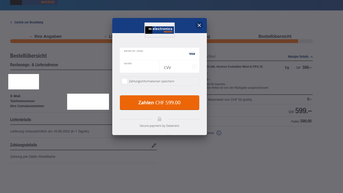 Funktioniert nicht mehr, erscheint jeweils die Meldung 'Zahlung nicht erfolgreich'. Habs 2x mit TWINT versucht und es hat mir den Betrag auch 2x abgebucht, leider keine Chance... Scheint vergriffen zu sein.