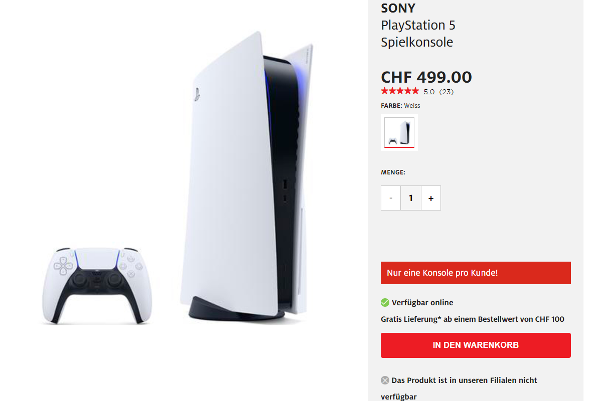 Deal scheint abgelaufen zu sein. Die Seite mit dem PS 5 Artikel von Manor ist nicht mehr aufrufbar.