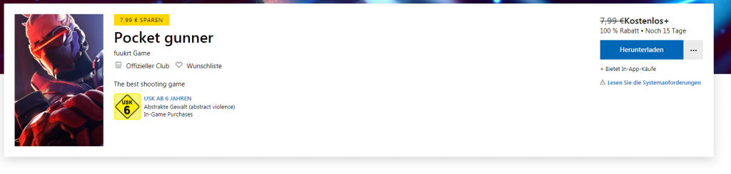 Das Spiel Pocket Gunner ist für PC momentan kostenlos im Microsoft Store erhältlich. Normalerweise kostet es CHF 7.99.
