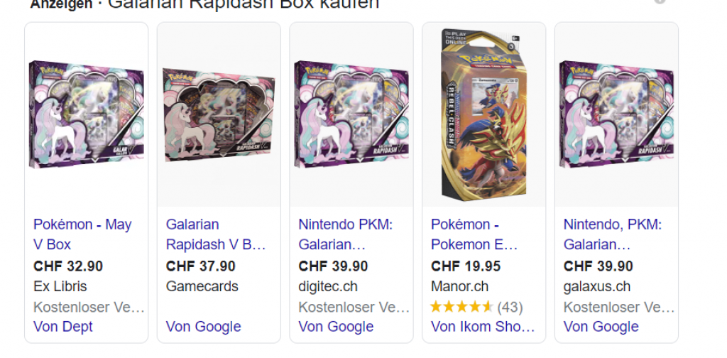 Bei Manor gibt’s gerade die POKÉMON Galarian Rapidash Box für CHF 29.90 Kostet ansonsten mindestens CHF 23.90, wenn nicht CHF 39.90