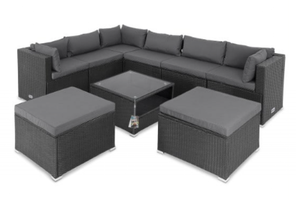 Die schöne Polyrattan Ecklounge in Schwarz/Anthrazit inkl. Kissen gibts zum Aktionspreis von CHF 719.95 inkl. Versand anstatt CHF 894.95 bei DeubaXXL.