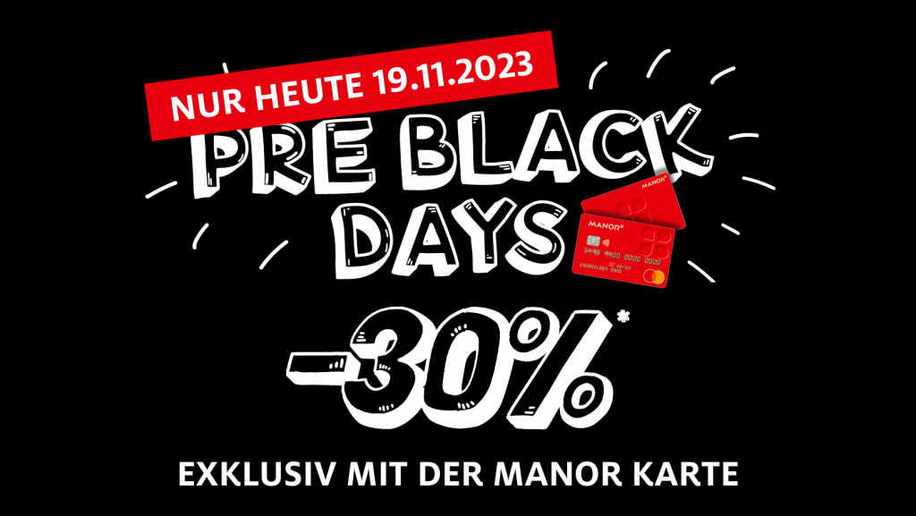 Profitieren Sie als Erster von den Black Days Angeboten bei Manor! -30%* mit Ihrer Manor-Karte - Nur heute!