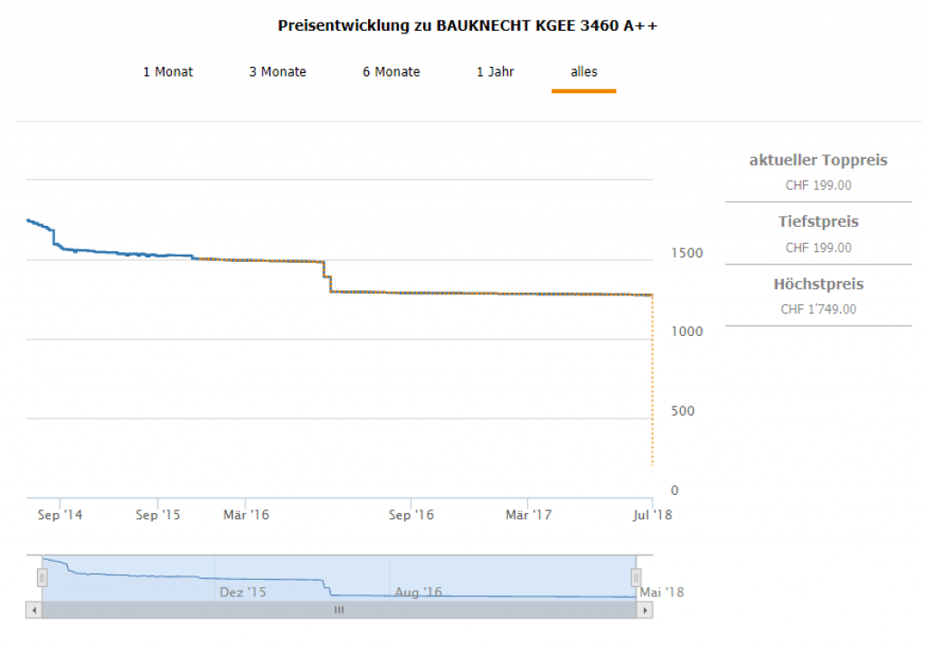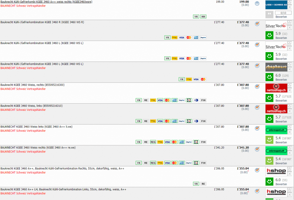 Der Shop Liebi + Schmid AG hat gerade einen Preisfehler zu einer Kühl-Gefrierkombi. Diese gibt’s für CHF 199.- statt CHF 1’277.- als zweitbesten Preis, was gleichzeitig auch der Bestpreis war.