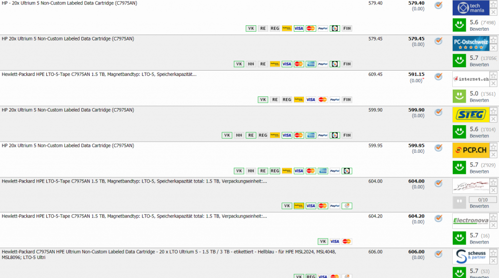 Eventuell handelt es sich um einen Preisfehler. Die Catridge HPE C7975AN gibts derzeit bei digitec für unglaubliche 38.20. Die Konkurrenz liegt bei mehr als 500.-