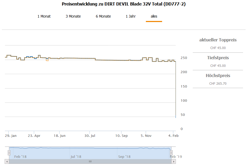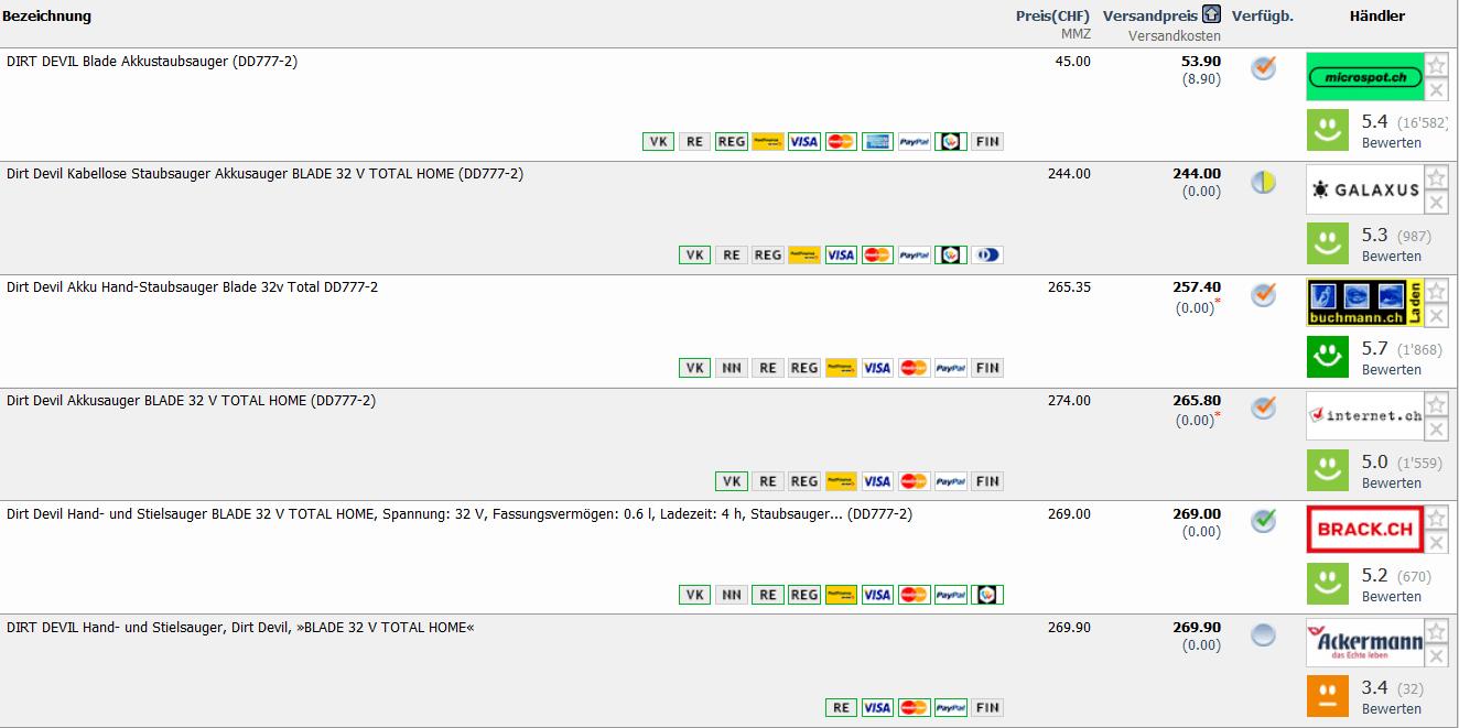Und noch einer hinterher, den DIRT DEVIL Blade 32V Total gibt es für 45.- CHF (+8.90 CHF Versandkosten oder gratis bei Filialabholung).