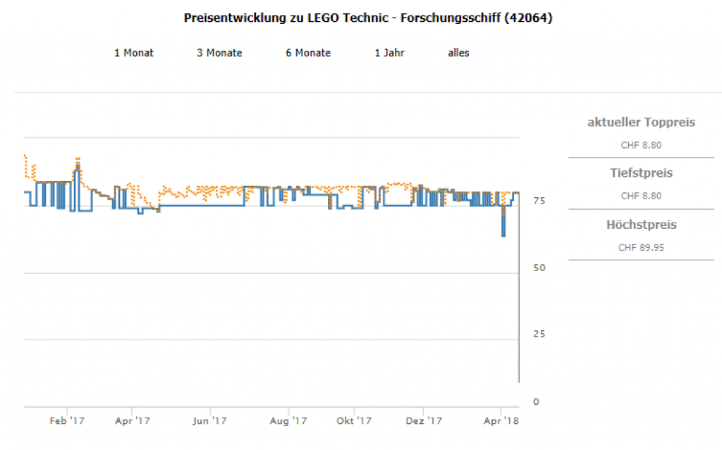 Auf hawk.ch gibt es gerade das LEGO Technic Forschungsschiff 42064 zum Knaller-Preis. Höchstwahrscheinlich handelt es sich dabei um einen Preisfehler!