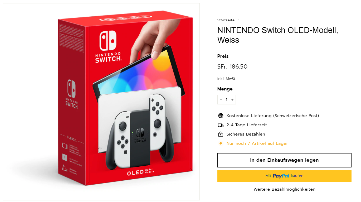 Schnell sein! Bei techclub gibt’s noch 9 Stück der Nintendo Switch OLED für unter 190 Franken! Ganz klar ein Preisfehler - könnte also sein dass es nicht geliefert wird.