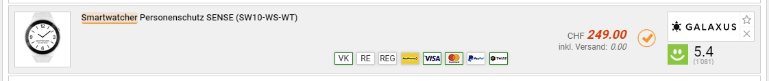 Die Firma Gleichcom AG verkauft aktuell Notfalluhren der Firma Smartwatcher für CHF 49.90 anstatt CHF 249.90. Der Aktionspreis ist im Text zwar mit CHF 149.90 angegeben, jedoch wird im Shop der Preis mit CHF 49.90 angezeigt. Könnte ein Tippfehler sein.