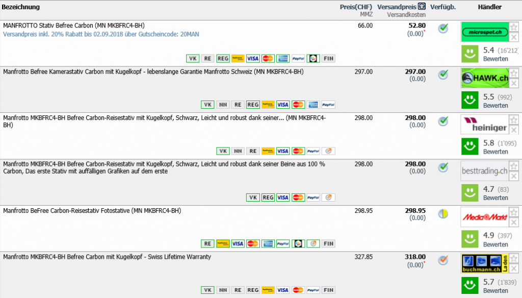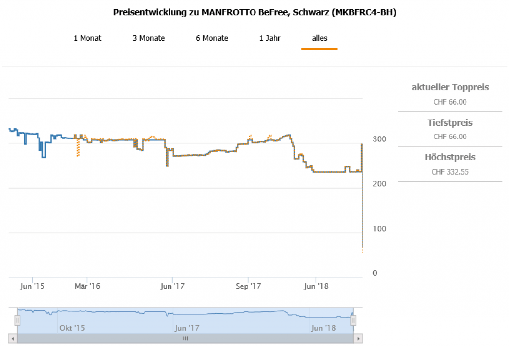 Da das Stativ sonst immer über 230.- CHF kostet dürfte es sich hierbei um einen Preisfehler handeln und die Bestellungen mit hoher Wahrscheinlichkeit storniert werden.