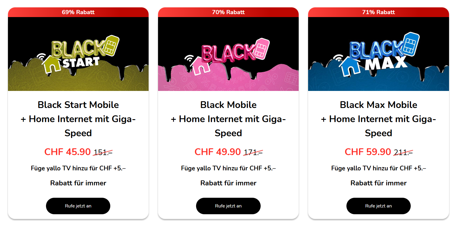 In Zusammenarbeit mit yallo präsentieren wir euch ein attraktives Kombi-Angebot für Mobile- und Internet-Abos. Wer aktuell auf der Suche nach einer Komplettlösung ist, wird hier definitiv fündig. Einfach bei der Bestellung am Telefon angeben, dass ihr das Angebot über Preispirat entdeckt habt. Bestellungen sind ausschliesslich über die Hotline 0800 00 48 48 möglich (Montag bis Freitag von 9:00 bis 20:00 Uhr und am Wochenende von 10:00 bis 19:00 Uhr).