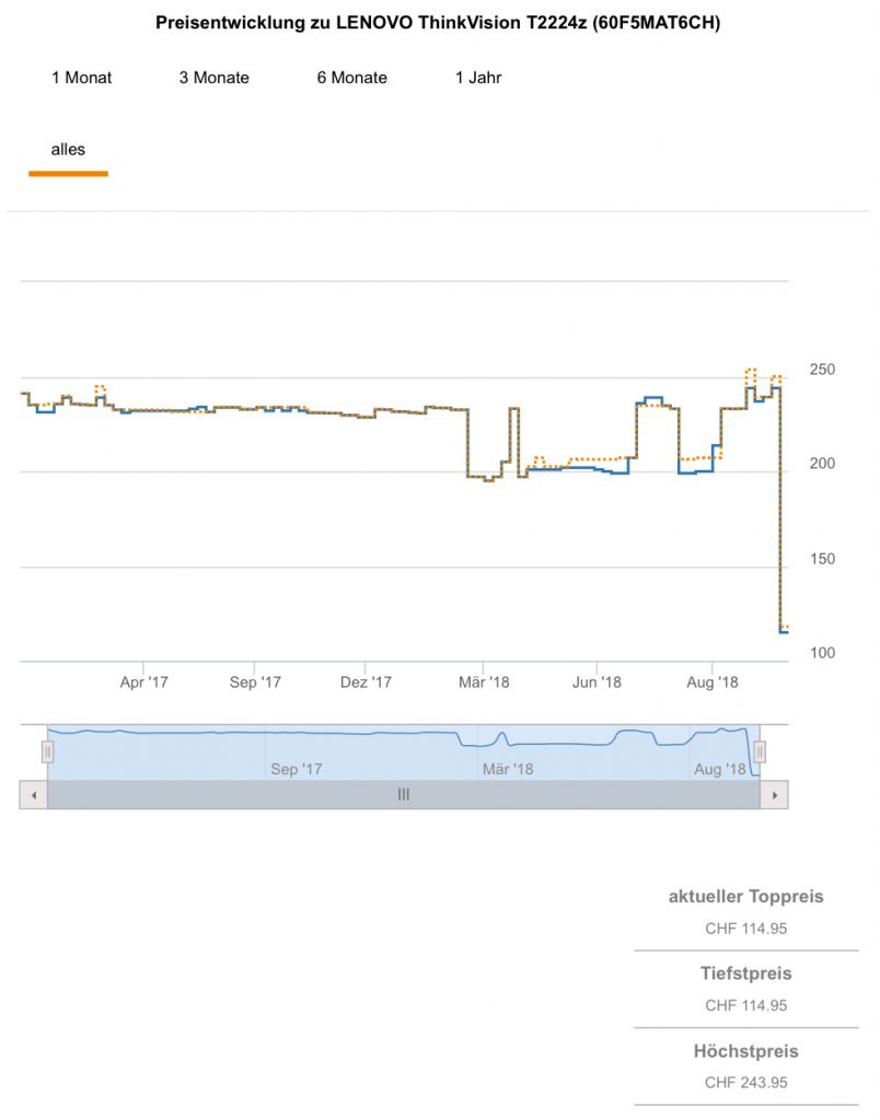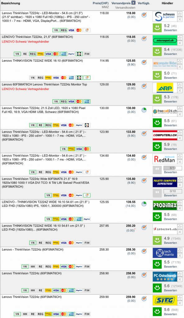Bis gestern gab es den 21.5″ Monitor LENOVO ThinkVision T2224z nie günstiger als für 195.- CHF.
