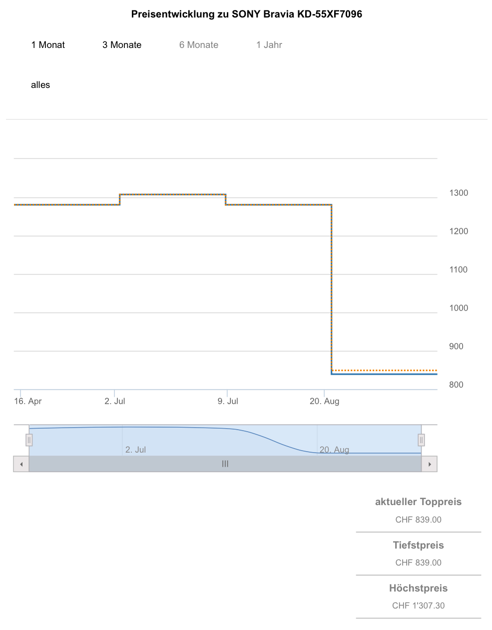 Preissturz beim 55“ TV SONY Bravia KD-55XF7096 auf 848.90 CHF inkl. Versand. Bis gestern gab es den TV gemäss toppreise nie günstiger als für 1280.60 CHF.