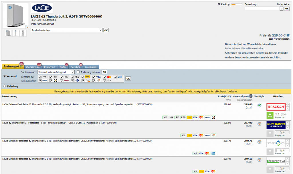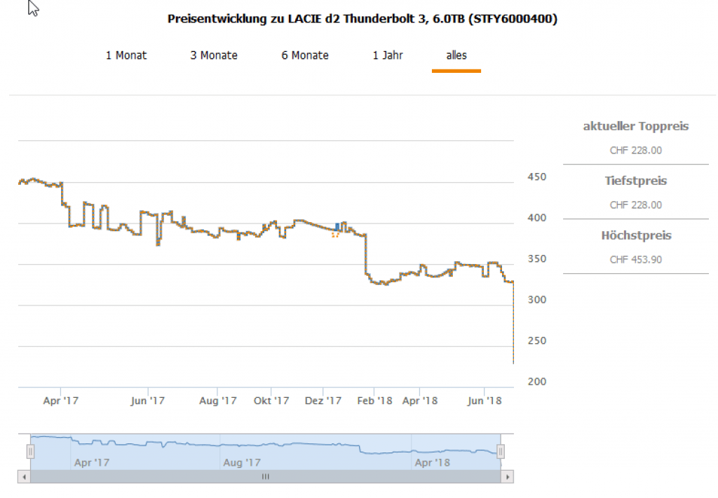Aktuell gibt es einen Preissturz bei der LACIE d2 Thunderbolt 3, 6.0TB externen Festplatte. Vor heute gab es die Festplatte noch nie günstiger als für 324.90 CHF.