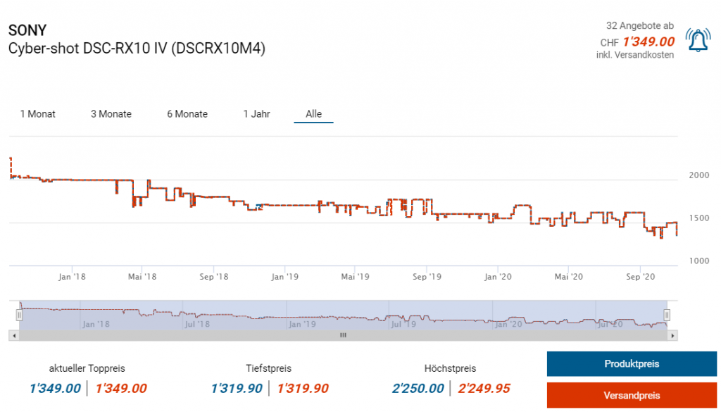 Bei Fust gibts derzeit die Premium-Kompaktkamera Sony DSC-RX10 IV inkl. 200 Franken Cashback-Möglichkeit zum Aktionspreis von 1349 Franken. Mit dem Newsletter-Gutschein spart ihr euch nochmal 10 Franken, übers Black-Friday-Gewinnspiel könntet ihr sogar noch einen 20 Franken Gutschein generieren.