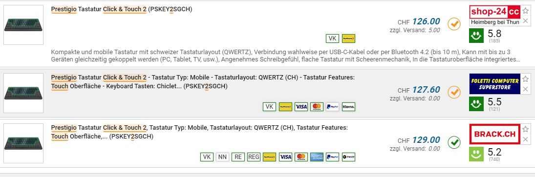 Bei DayDeal gibt es heute die Prestigio Click & Touch 2 Bluetooth Tastatur für CHF 99.-. Ein Preisverlauf ist nicht vorhanden, der zweitbeste Preis beträgt CHF 126.-.