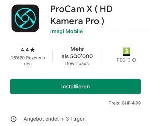 Bis Mittwoch gibt es die ProCam X App kostenlos