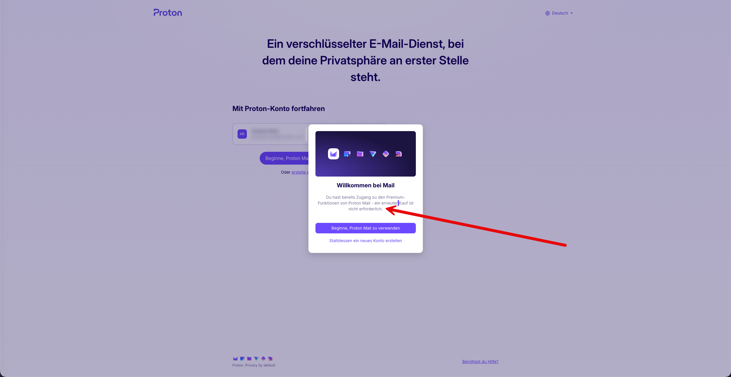 Bei mir erscheint ebenfalls die Meldung: „Du hast bereits Zugang zu den Premium-Funktionen von Proton Mail – ein erneuter Kauf ist nicht erforderlich.“ mit Proton Family