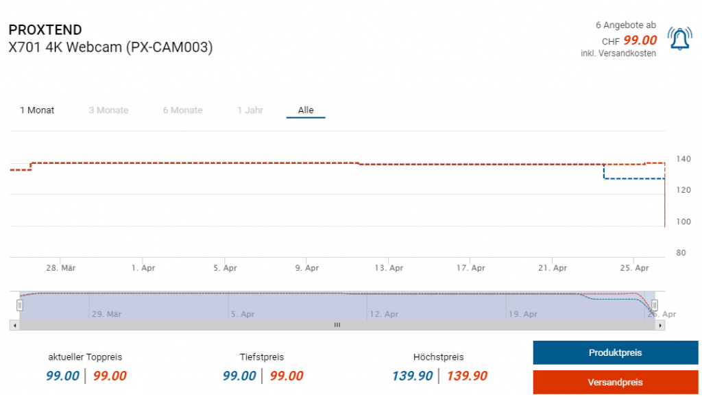 Bei microspot gibts die Webcam ProXtend X701 mit einer UHD-Auflösung zum Aktionspreis von 99 Franken. Laut toppreise ist dies neuer Bespreis, sonst kostet sie derzeit mind. CHF 139.90.