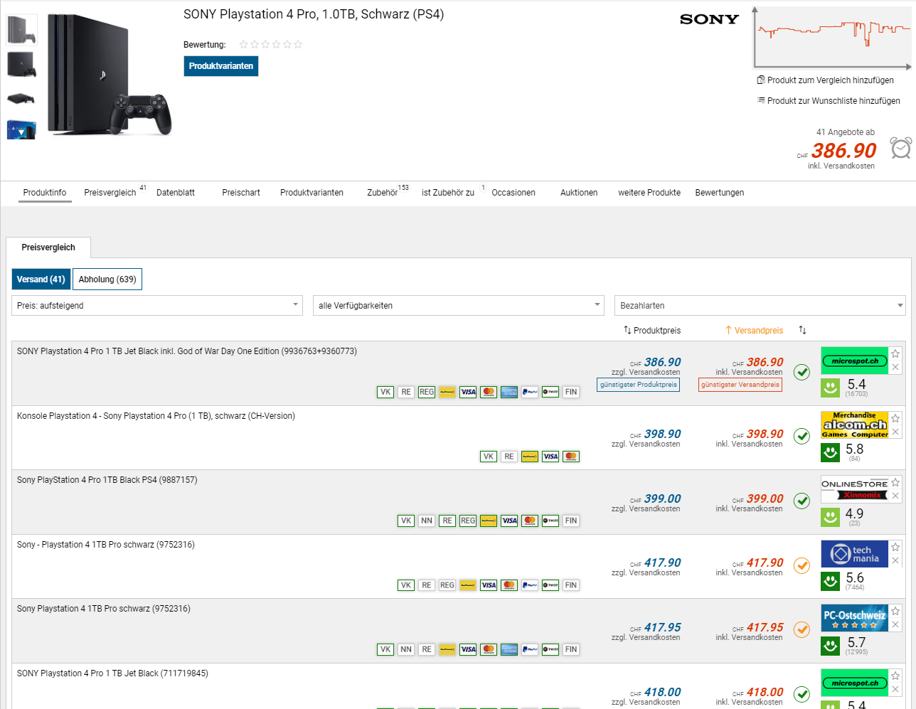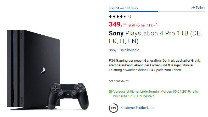 Die PS4 Pro gibts jetzt im Sale von Digitec vergünstigt. Bisheriger Tiefstpreis war 299.- zur Weihnachtszeit, also nicht der beste Deal, aber momentan der beste Preis.