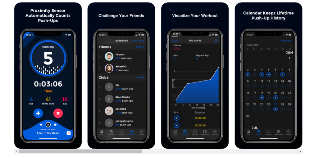 - Lifetime record of push-ups, push-up sets, and workouts.