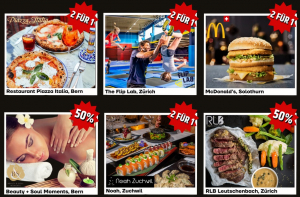 Die Coupons sind entweder 2Für1, 4Für2 oder 50% Rabatt.