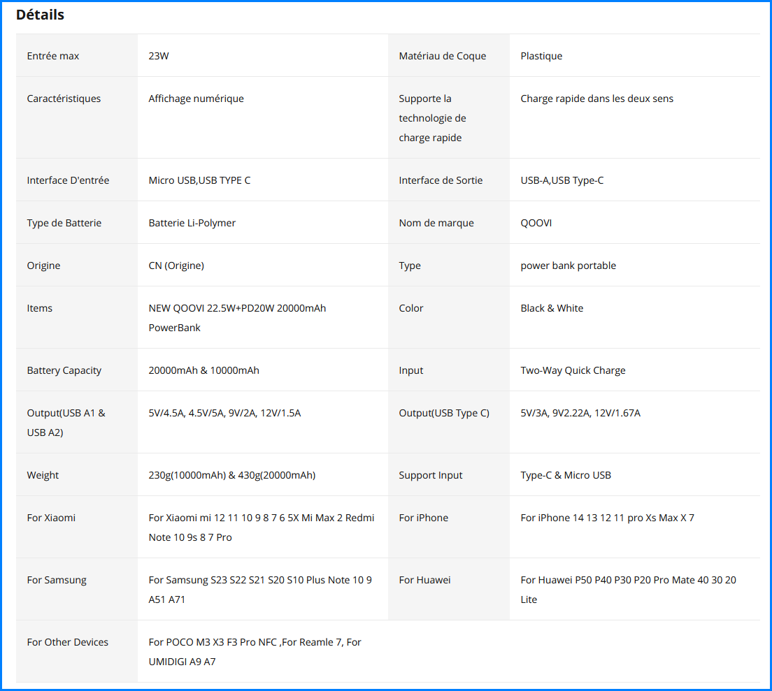 Qoovi 20000 mAh Powerbank mit bis zu 22.5W und Power Delivery