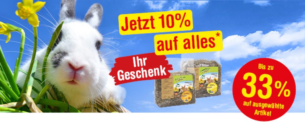 Wenn ihr zudem für mind. 25 Franken einkauft, erhaltet ihr das Futterpaket Happy Rancho Landwiesenheu 500g in der Geschmacksrichtung Löwenzahn ODER Sonnenblumen.