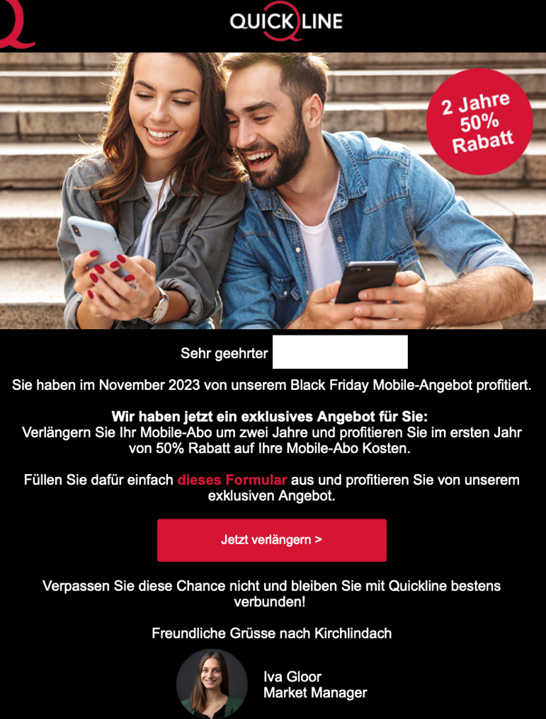 - Quickline’s ‘Retention Team’ versucht, die Flucht der Piraten mit folgendem Angebot (https://quickline.ch/blackdays-folgeangebot) zu verhindern. Ob dies ein piratenwürdiger Deal ist sei dahingestellt…