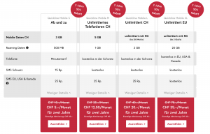 Die Abos sind jeweils im Sunrise Netz und inkl. 5G (bei Mobile L wird die Geschwindigkeit auf 300 Mbit/s limitiert)