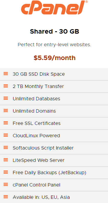 Mit 30 GB blitzschnellem NVMe-Speicher und 3 TB monatlichem Datentransfer hast du mehr als genug Power. Dank LiteSpeed Web Server und automatischen JetBackup-Sicherungen läuft alles stabil und sicher. Über das mitgelieferte cPanel oder den SiteJet AI Builder lassen sich Websites zudem auch ohne Programmiererfahrung im Handumdrehen aufbauen.