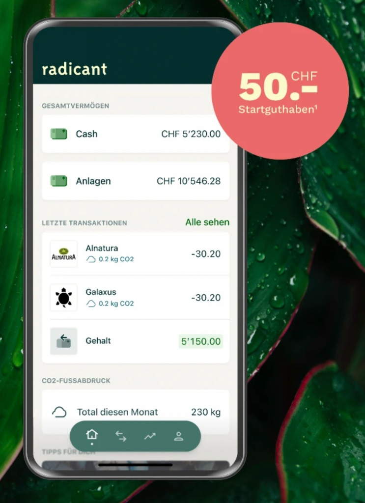 50.- Startguthaben gültig für die ersten 5000 Neukunden bei vollständiger Kontoeröffnung bis zum 31.10.2023. Das Startguthaben wird am Ende des Monats ausgezahlt.