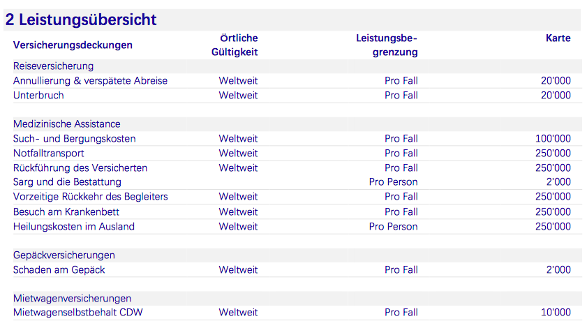 Bedingung: 50 % der Reise/Leistung werden mit der Radicant-Karte bezahlt (die Kartentransaktionen werden mit einem Interbanken-Wechselkurs umgerechnet, so dass bei der Zahlung mit der Karte keine zusätzlichen Kosten anfallen und die Versicherung wirklich kostenlos ist).