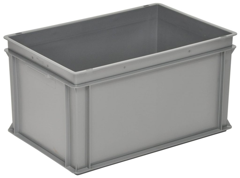 RAKO-Behälter, innen 558x358x320 mm, Wände und flacher Boden geschlossen, Muschelgriffe auf den Schmalseiten