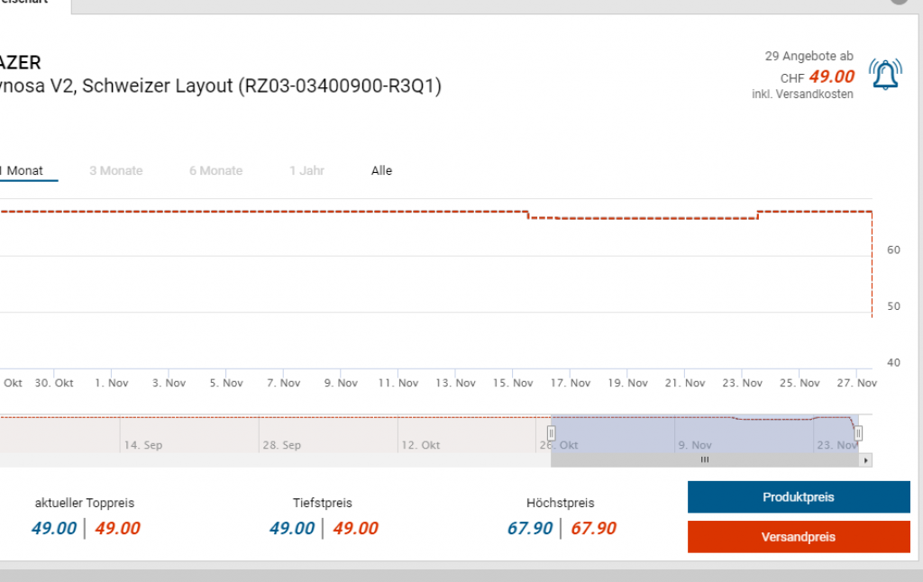 Bei Media Markt gibt es die RAZER Cynosa V2 Gaming Tastatur für den neuen Bestpreis von CHF 49.-. Der vorherige Bestpreis war CHF 66.-. Der zweitbeste Preis beträgt CHF 67.80.