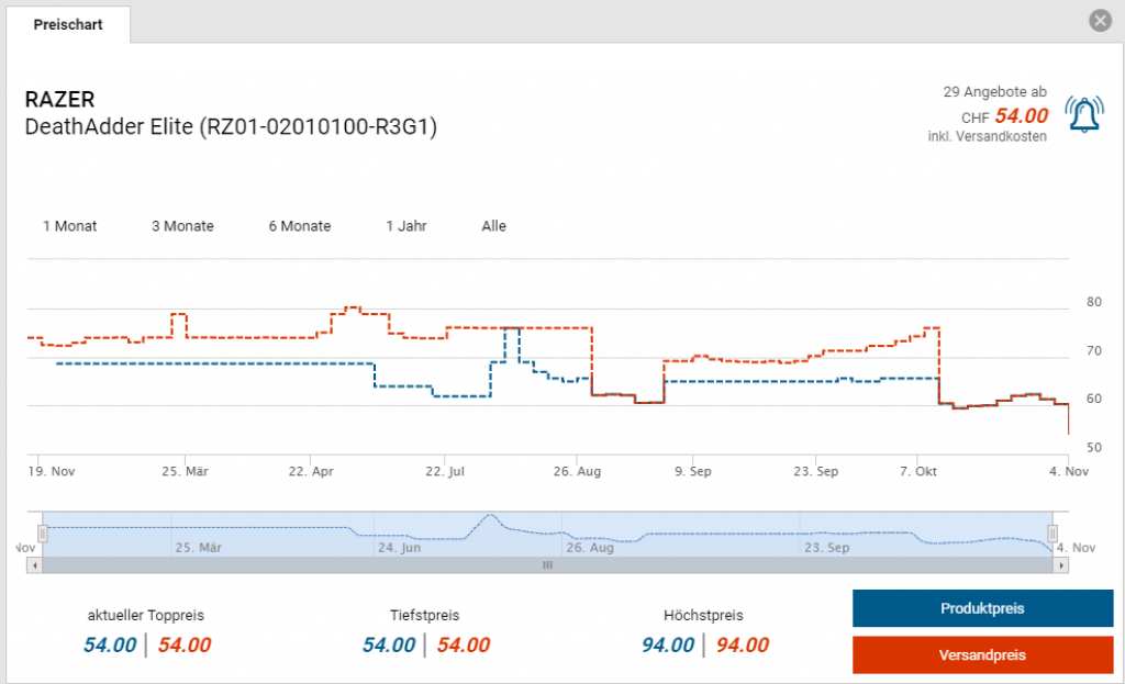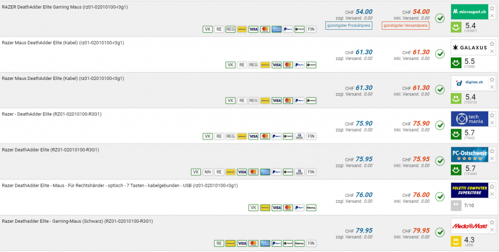 Bei Microspot gibt es die RAZER DeathAdder Elite für den neuen Bestpreis von CHF 54-. Der vorherige Bestpreis war CHF 59.40. Der zweitbeste Preis beträgt CHF 61.30.