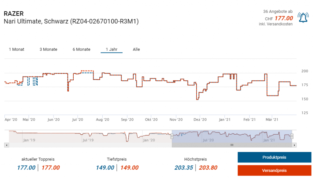 Bei Amazon Frankreich gibts derzeit das Gaming-Headset Razer Nari Ultimate zum Aktionspreis von knapp 129 Franken. Die Kopfhörer waren gerade gestern sogar nur etwa 102 Franken, das Angebot ist aber scheinbar schon weg 😔
