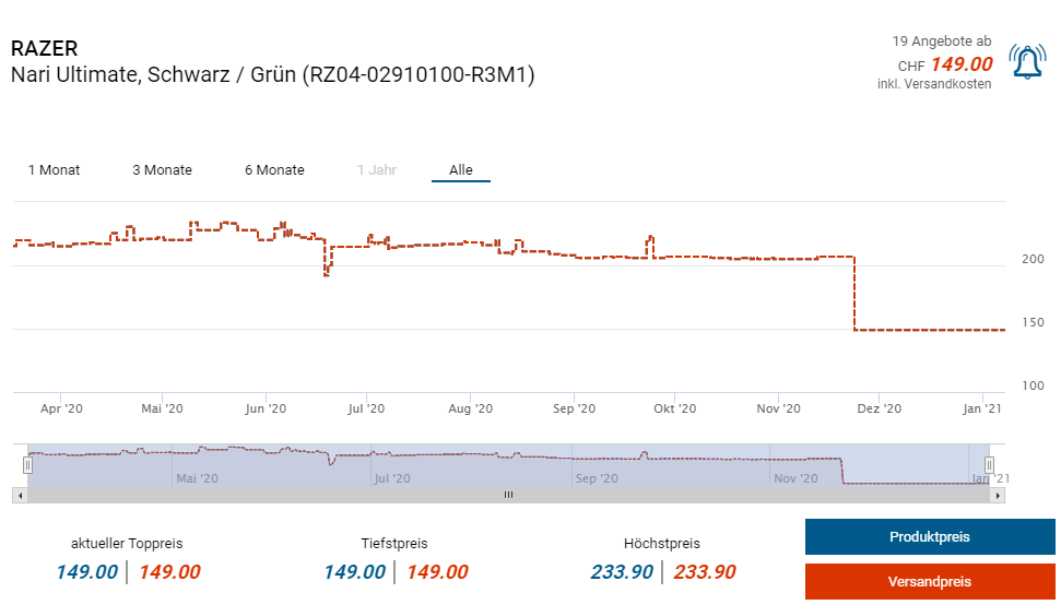 Bei der pcp-Gruppe (PC-Ostschweiz, pcp, Steg und Techmania) gibts seit längerem die kabellosen Gaming-Kopfhörer Razer Nari Ultimate zum Preis von 149 Franken. Bis vor kurzem waren sie auch bei digitec nicht an Lager, was sich nun aber geändert hat. Trotzdem soll bei digitec die Lieferung länger gehen. Ansonsten starten die Preise auch ab 200 Franken in der Schweiz.