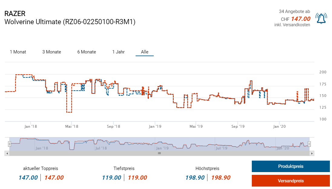 Bei amazon.de gibts gerade den Razer Wolverine Ultimate Controller für die Xbox/PC zu einem guten Kurs. Digitec verlangt als zweitbesten Preis 147 Franken, der Bestpreis allgemein lag in der Vergangenheit bei ca. 119 Franken.