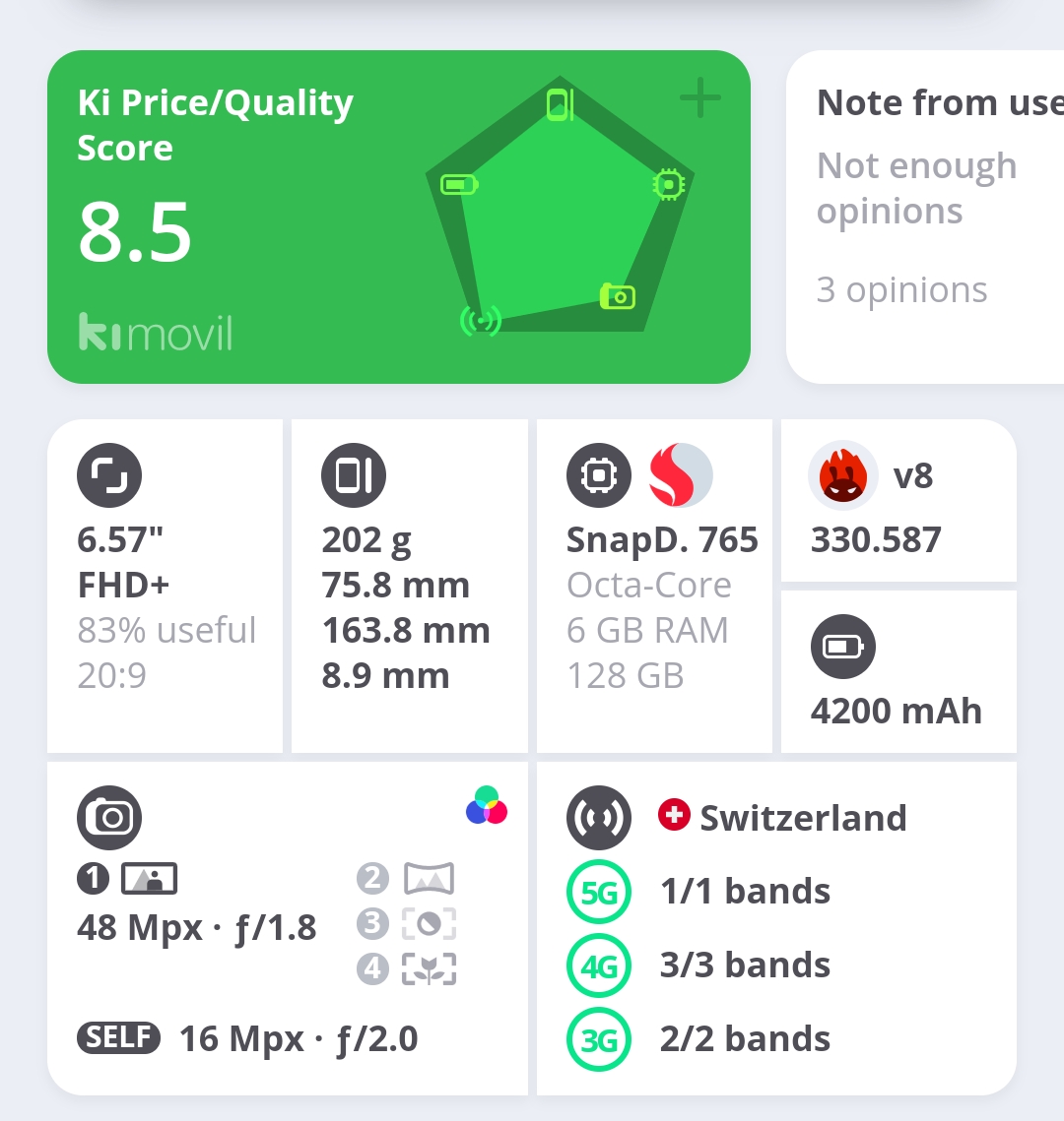 Bei Amazon Spanien und Grossbritannien kann man sich derzeit das Realme X50 5G in der 6/128GB Ausführung zum Aktionspreis von knapp 324 Franken sichen. In der Schweiz haben wenige Händler das Smartphone im Sortiment, bei evenshop kostet es z.B. 499 Franken.